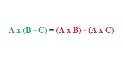A x (B – C) = (A x B) – (A x C)